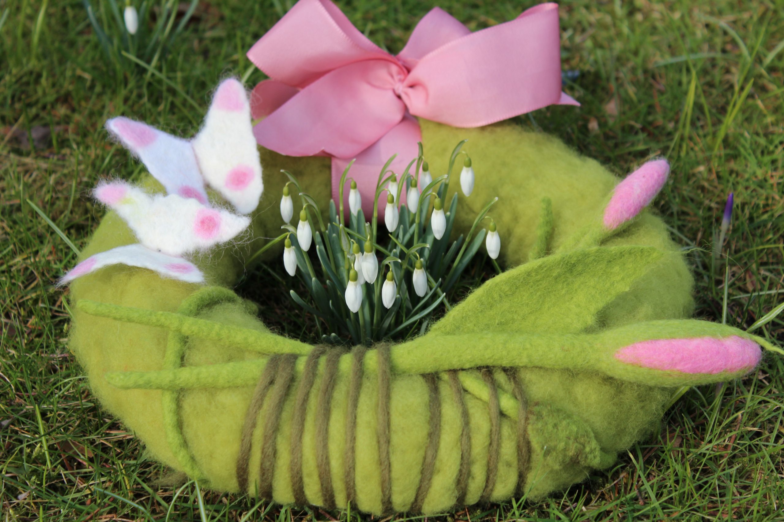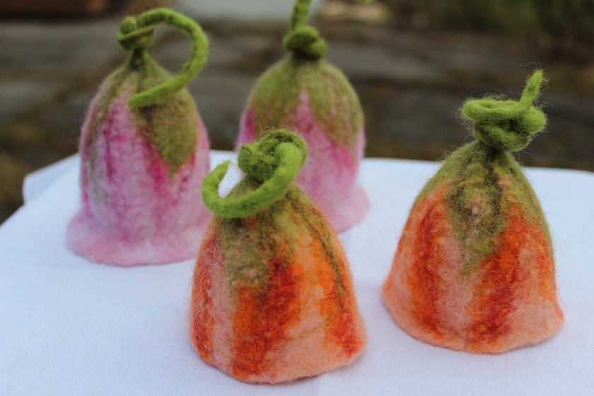 Galerie Eierwärmer Teewärmer „Narzissen“ gefilzte Mitteldecke „Verzweigt“ in Nunofilztechnik Frühlingsblüten